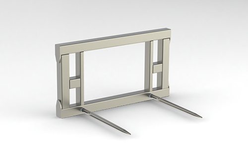The VT model is ideal for carrying round bales. The large tine is used to spike and lift the bale while the short tine prevents the bale turning or wobbling during transport.