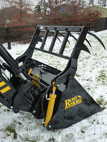 The Rossmore bucket grab has been designed to keep up with the constant changes in the farming and modern day use of diet and tub feeders.The head of the implement functions as a grapple, it is tilted forward and used to pull apart pit silage which is then loaded and fed into the feeder. The sides of the bucket are used to ensure no loose material becomes lost.
