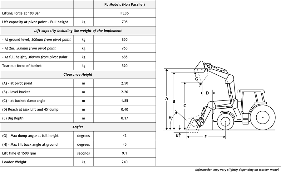 The FL35 is suitable for compact tractor range from 35 to 60 horse power.