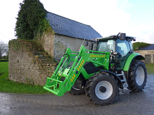 The SL65 front loader is suitable for tractor range from 90 – 115 horse power. Has a lifting height of 3.45 metres underneath base of implement. Maximum payload is 1315 kgs at full height.