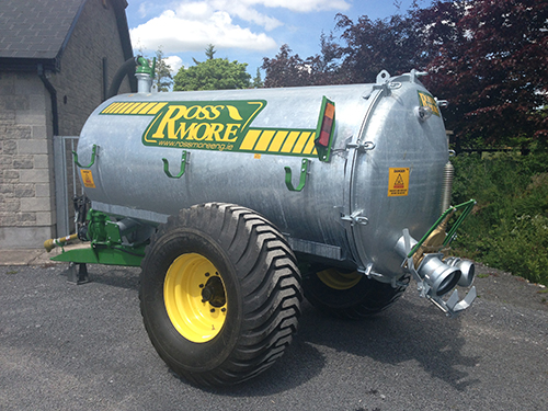 Through quality design and precision manufacturing, Rossmore tankers are setting the market standard. All our 1100 gl model vacuum tankers are made from high quality 5 mm steel. They are rolled and precisely fitted with anti-implosion rings. All models are designed with maximum balance ensuring the operator with an optimum and safe experience. Each tank (1100-1600) is fitted with a full hinged opening back door and is hot dipped in superior galvanise for a high quality, long lasting finish. Our standard tank range are precisely balanced and can be fitted with a variety of tyres to suit each farmers demands.